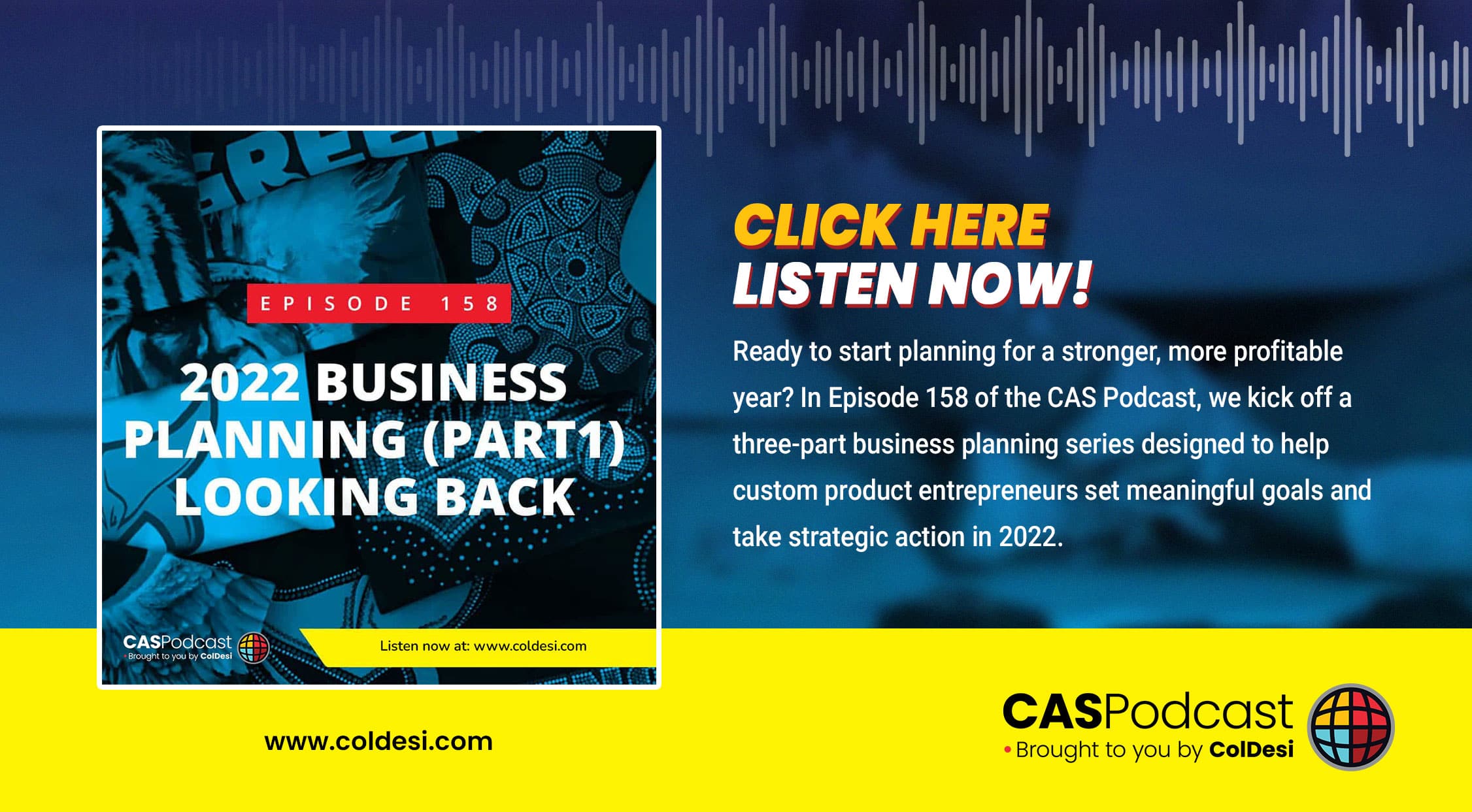 Ready to start planning for a stronger, more profitable year? In Episode 158 of the CAS Podcast, we kick off a three-part business planning series designed to help custom product entrepreneurs set meaningful goals and take strategic action in 2022.